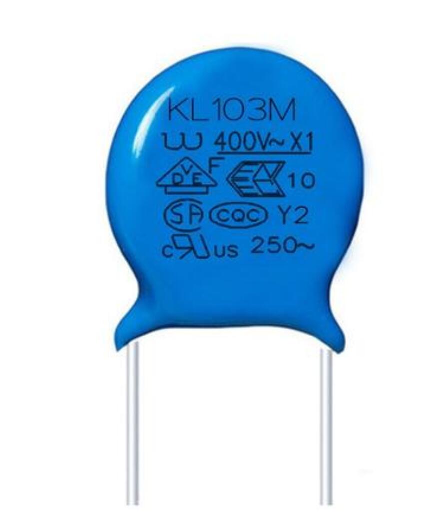 Y电容的电容量必须受到限制,从而达到控制在额定频率及额定电压作用下,流过它的漏电流的大小和对系统EMC性能影响的目的。GJB151规定Y电容的容量应不大于0.1uF。Y电容除符合相应的电网电压耐压外,还要求这种电容器在电气和机械性能方面有足够的安全余量,避免在极端恶劣环境条件下出现击穿短路现象,Y电容的耐压性能对保护人身安全具有重要意义。 特别指出:作为安全电容的Y电容,要求必须取得安全检测机构的认证。Y电容外观多为橙色或蓝色,一般都标有安全认证标志(如UL、CSA等标识)和耐压AC250V或AC275V字样。然而,其真正的直流耐压高达5000V以上。 必须强调,Y电容不得随意使用标称耐压AC250V或者DC400V之类的普通电容来代用。