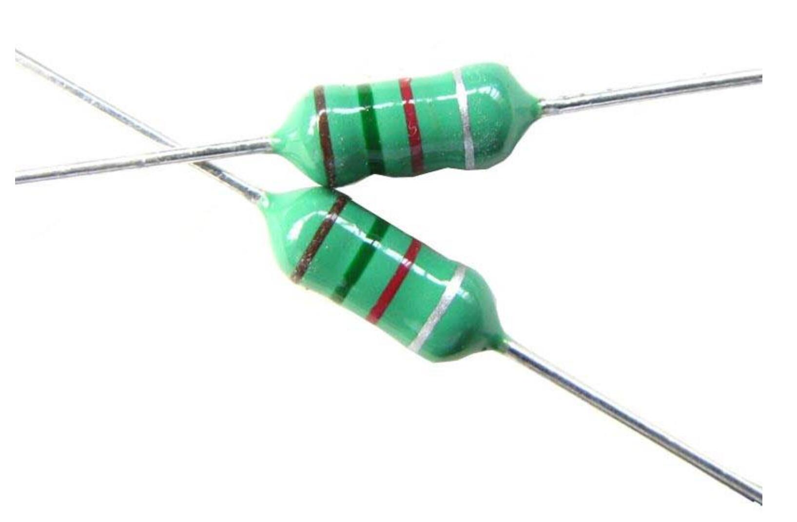 色环电感颜色代表的误差等级:金5[%]、银10[%]、棕1[%]、红2[%]、绿0.5[%]、蓝0.25[%]、紫0.1[%]、灰0.05[%]